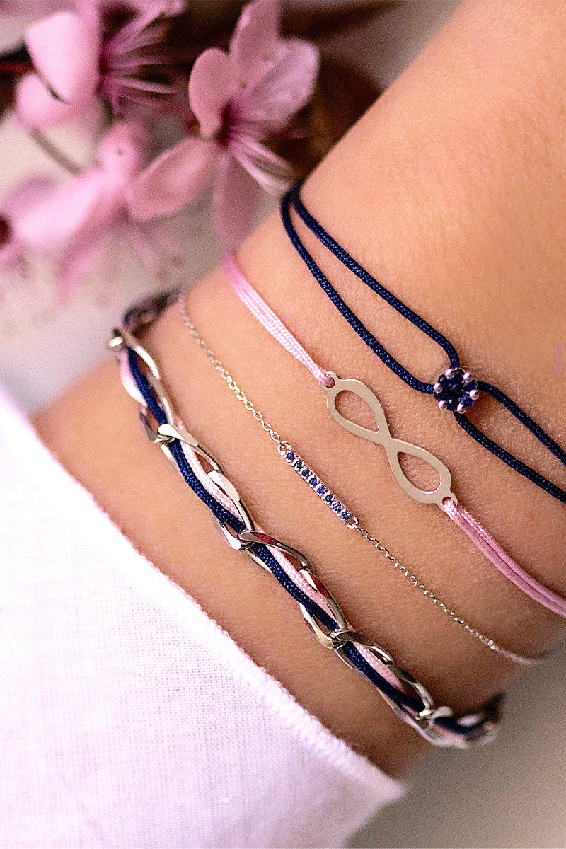 Armband Unico Silber rhodiniert , Textil rosa-braun