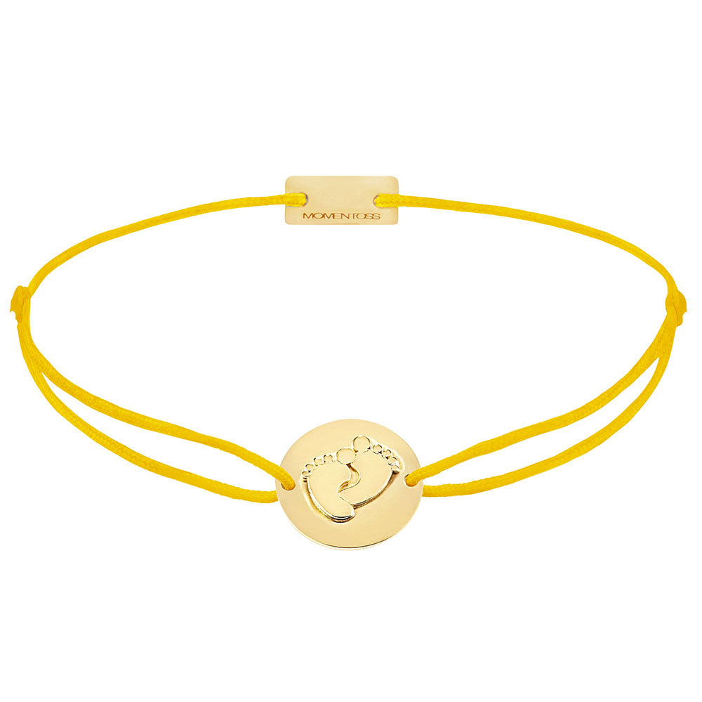 Armband Silber vergoldet Babyfüße, Textil gelb
