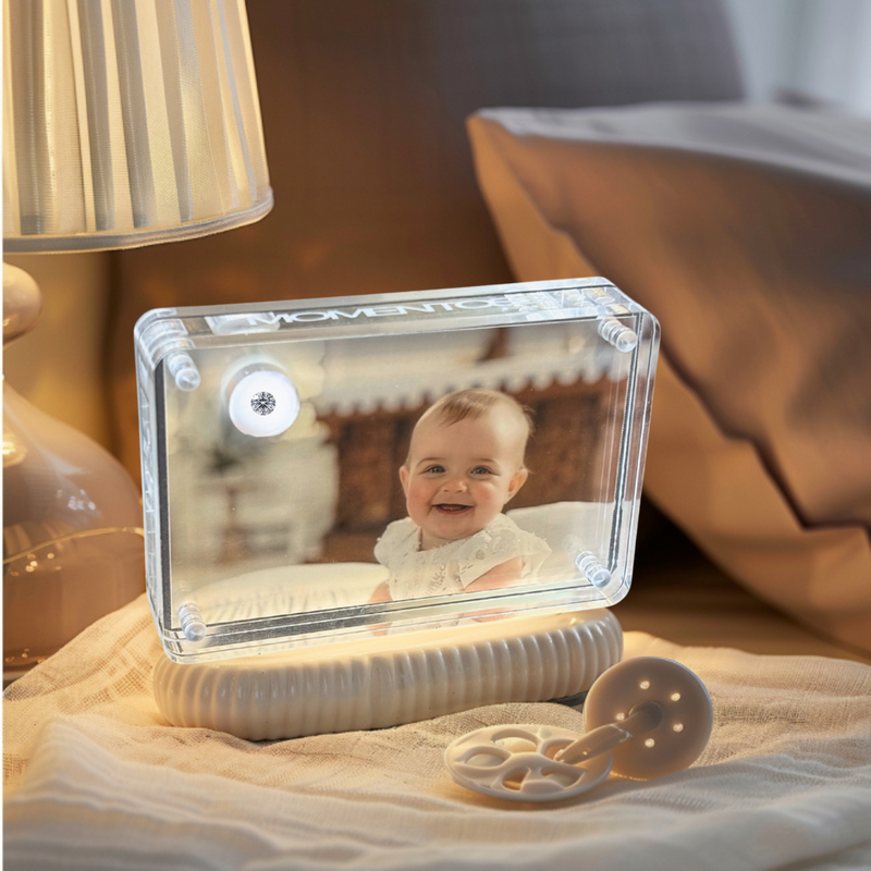Der Moments Frame macht aus jedem Foto ein schwebendes Erinnerungsstück zwischen zwei glasklaren Acrylplatten, gehalten von unsichtbaren Magneten. Ein echter Labor-Diamant ergänzt das Bild mit Symbolkraft, Eleganz und Beständigkeit. Präzise Handarbeit und sorgfältige Endkontrolle garantieren höchste Qualität. Verpackt in einer edlen Geschenkbox wird jeder Frame zu einem besonderen Highlight.